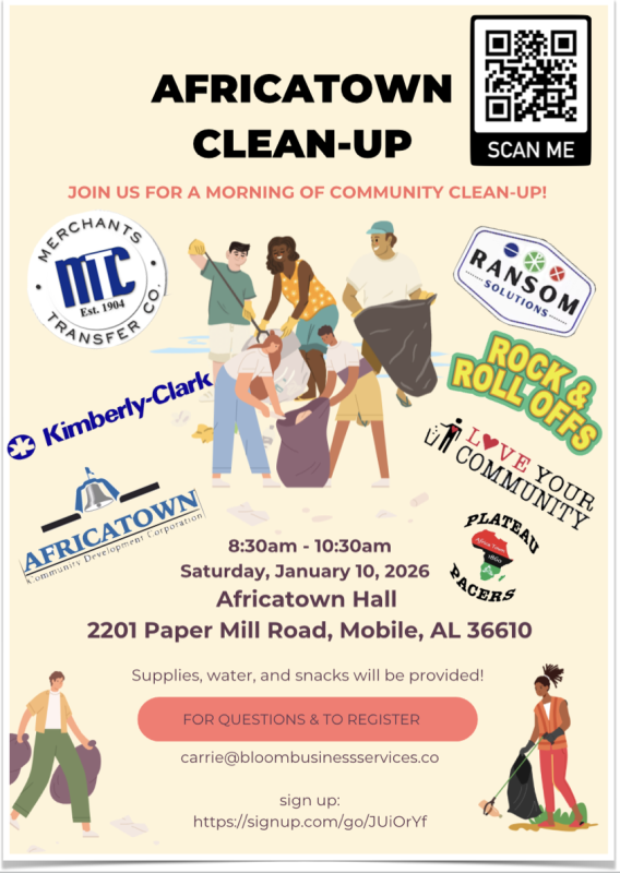 The first cleanup of 2026 will take place on Saturday, Jan. 10, at 8:30 a.m. at Africatown Hall. What better way to start a Saturday morning than by