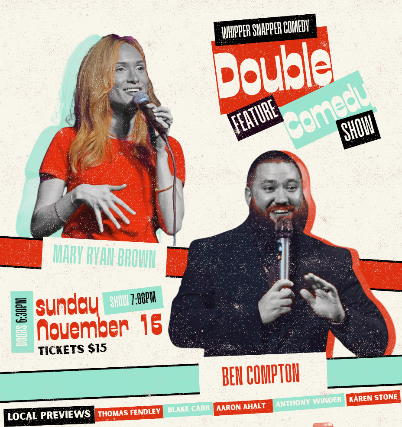 Whipper Snapper Comedy presents a double feature with Mary Ryan Brown and Ben Compton on Sunday, Nov. 16, at 7 p.m. at the Crescent