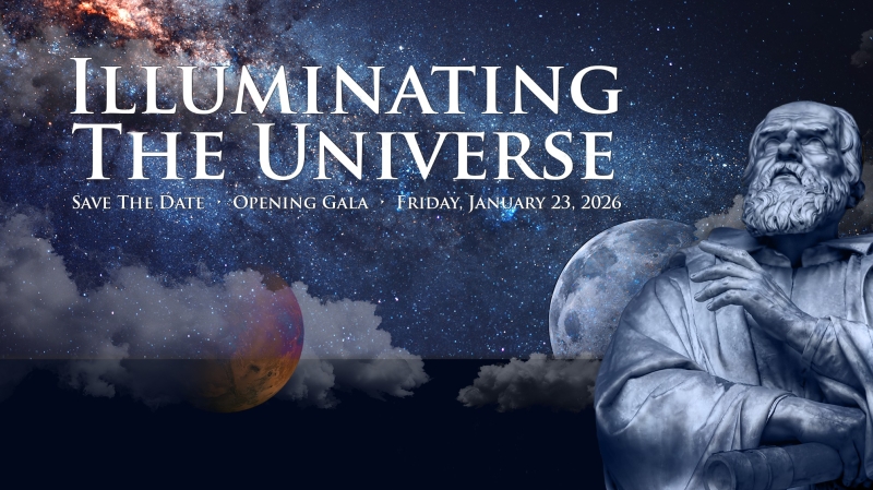 Illuminating the Universe, an immersive opening gala for Galileo: The Science of Antiquity, will take place on Friday, Jan. 23, from 6 to 9 p.m.