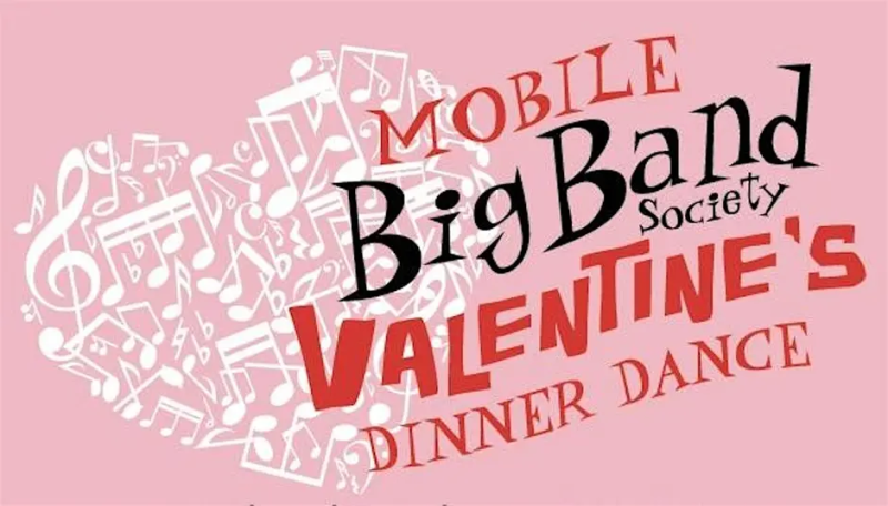 The Mobile Big Band Society Valentine's Dinner Dance will be held on Friday, Feb. 13, from 6:30 to 10 p.m. at the Aircraft Pavilion at the