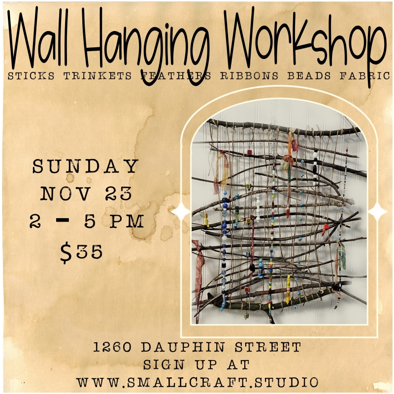 Learn to make a wood and twine wall hanging decorated with all the bits and baubles at this workshop with artist Deirdre Sanders on Sunday, Nov. 23,