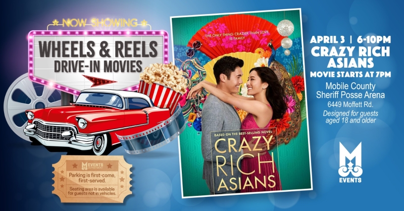 As part of its Wheels and Reels Drive-In Movies series, the City of Mobile Office of Special Events will show the movie "Crazy Rich Asians"