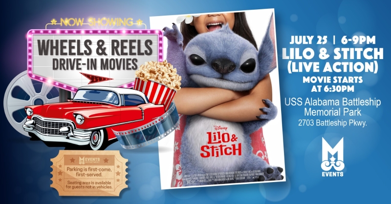 As part of its Wheels and Reels Drive-In Movies series, the City of Mobile Office of Special Events will show the movie "Lilo & Stitch (Live