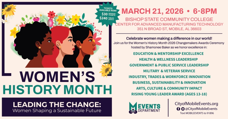 Celebrate in the women in Mobile who are shaping a sustainable future through leadership, service and community impact on Saturday, March 21, from 6