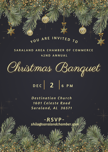 The Saraland Area Chamber of Commerce will host its 42nd annual Christmas Banquet on Tuesday, Dec. 2, from 6 to p.m. at Destination Church.