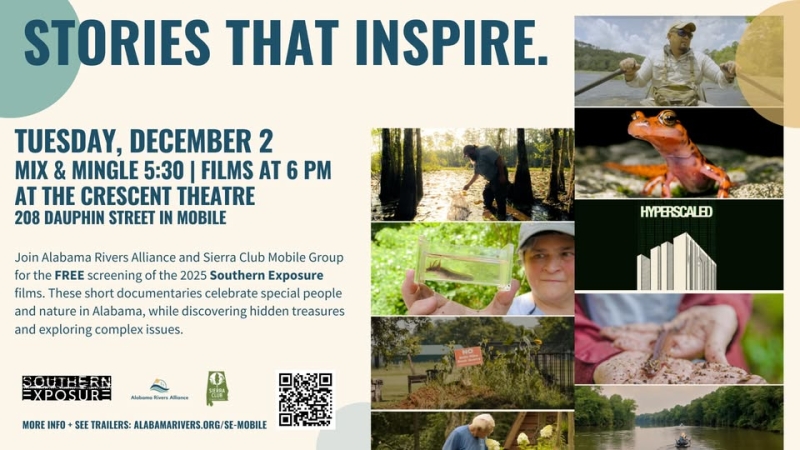Join Alabama Rivers Alliance and Sierra Club Mobile Bay Group for an inspiring night of film and conversation on Tuesday, Dec. 2, at 6 p.m. at the