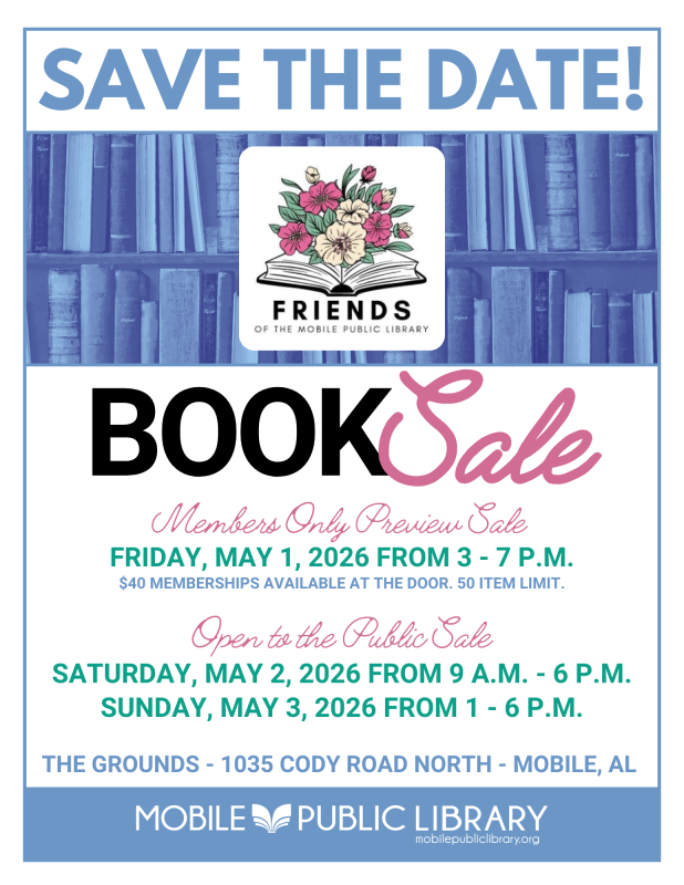 The Friends of the Library's used book sale benefiting Mobile Public Library will be held Saturday, May 2, from 9 a.m. to 6 p.m., and Sunday, May