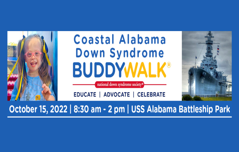 Join the Coastal Alabama Down Syndrome Society as they unite for a common cause and raise funds at the 2022 Coastal Alabama Down Syndrome Buddy Walk. Saturday Oct. 15, 2022. From 8:30 a.m. to 2 p.m. at USS Alabama Battleship Park. Whether you have Down syndrome, know someone who does, or just want to show your support of people with developmental disabilities, take the first step and donate or register today! Help spread the word, all are welcome their day of celebration! For more information on how to register or donate visit https://www.ds-stride.org/coastalalabamabuddywalk/Event-Information