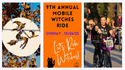 Delta Dogs hosts the 9th annual Mobile Witches Ride on Sunday, Oct. 26, from 3:30 to 8:30 p.m. (witches fly at 5 p.m.), starting and ending at The Blind Mule. Participants should wear their best witch costume and hop on their broom (aka bicycles) for a three-mile, easy-paced bike parade around downtown Mobile. The fun will end in a fabulous block party with music, libations and food from The Blind Mule. A ticket also provides access to the block party, a free beer and a short-sleeved event T-shirt (early registration only). Other beverages will be available through onsite vendors. Men are welcome to participate, too. Riders must be 18 years old. Children are welcome to watch the parade along the route and can join the Black Hat Block Party for FREE. Tickets are $35. For more information, go to www.facebook.com/events/680716664314472.