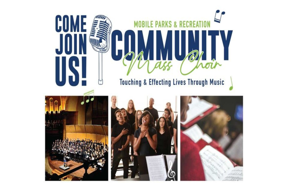 The NEW MPRD Community Mass Choir is a group of singers from across the City of Mobile. Our mission is to empower and strengthen everyone through music. Join us as we grow as a community and family on Tuesdays, Nov. 5, 2024, and Nov. 12, 2024, from 6 to 7:30 p.m. at James M. Seals, Jr. Community Center. For more information visit: (1) Community Mass Choir | Facebook
