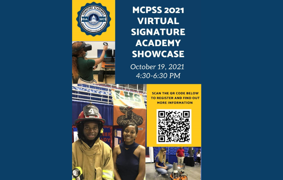Mark your calendars for Oct. 19, 2021, as the MCPSS 2021 Virtual Signature Academy Showcase takes place. The district has 12 comprehensive high schools that are wall to wall academy schools, meaning all 10th-12th graders are associated with a career academy. The Signature Academy Showcase is a "one stop shop" for 8th Grade parents and students. This year you can participate wherever you are and all 12 Academies will be live to answer questions. To learn more, visit https://signatureacademyshowcase.vfairs.com/en/