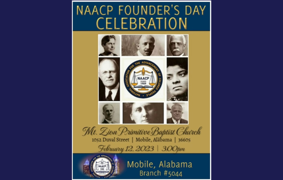 Join the OLDEST and BOLDEST Civil Rights Organization in celebrating its 114th Founders Day. Sunday, Feb. 12, 2023, at 3 p.m. at Mt. Zion Baptist Primitive Baptist Church. Free to the public. For more information visit: www.mobilenaacp.org