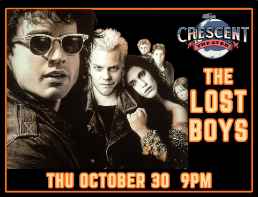 The 1987 cult classic "The Lost Boys" will be shown on the big screen on Halloween Eve, Thursday, Oct. 30, at 9 p.m. at the Crescent Theater. Packed with vampires, '80s attitude and an unforgettable soundtrack, this stylish horror-comedy has become a fan favorite for a reason. Tickets are $15 at the door; guests must be 18 and up. For more information, go to https://crescenttheater.com.