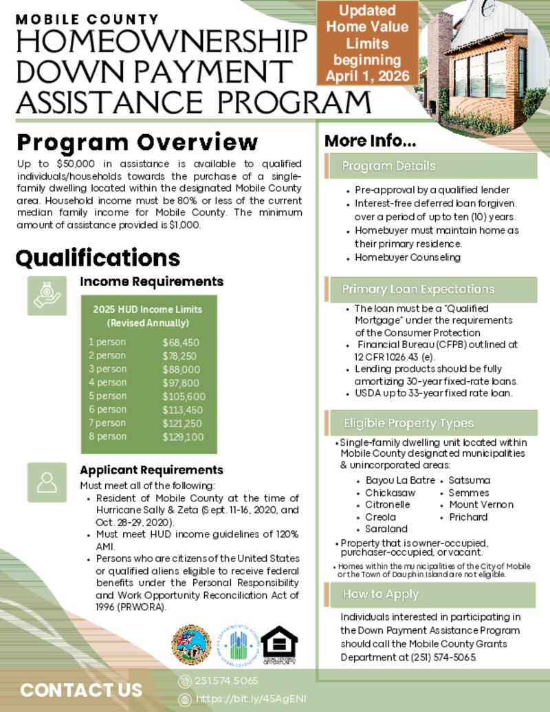 While this program will give priority to LMI homeowners and renters who were impacted by the 2020 hurricanes Sally & Zeta, individuals who are on the path to homeownership are also encouraged to apply.