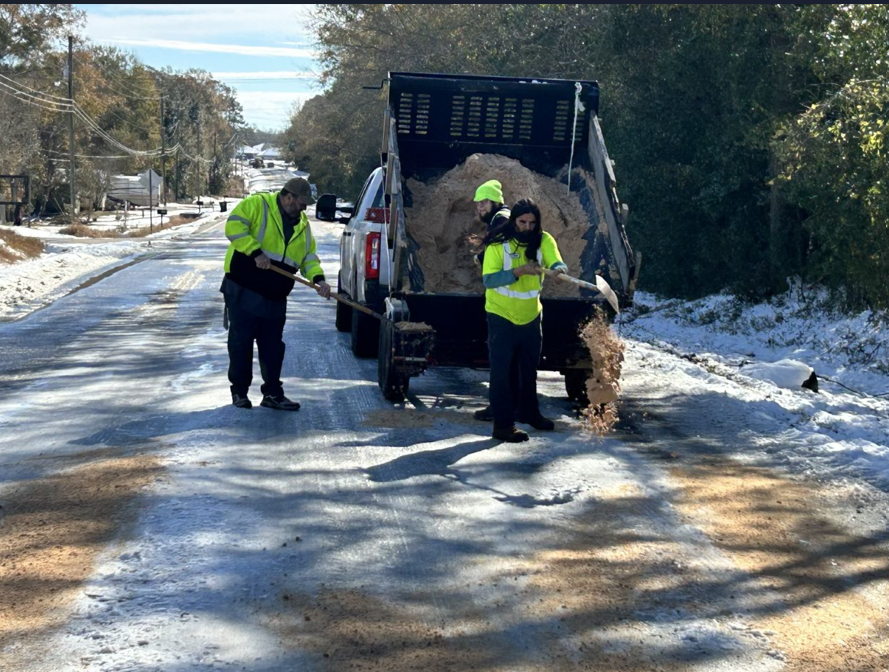 Mobile County Public Works is working on major County routes where there are icy patches. Crews are still plowing off as much ice as possible and placing sand to help with traction and thawing as temperatures warm today.
