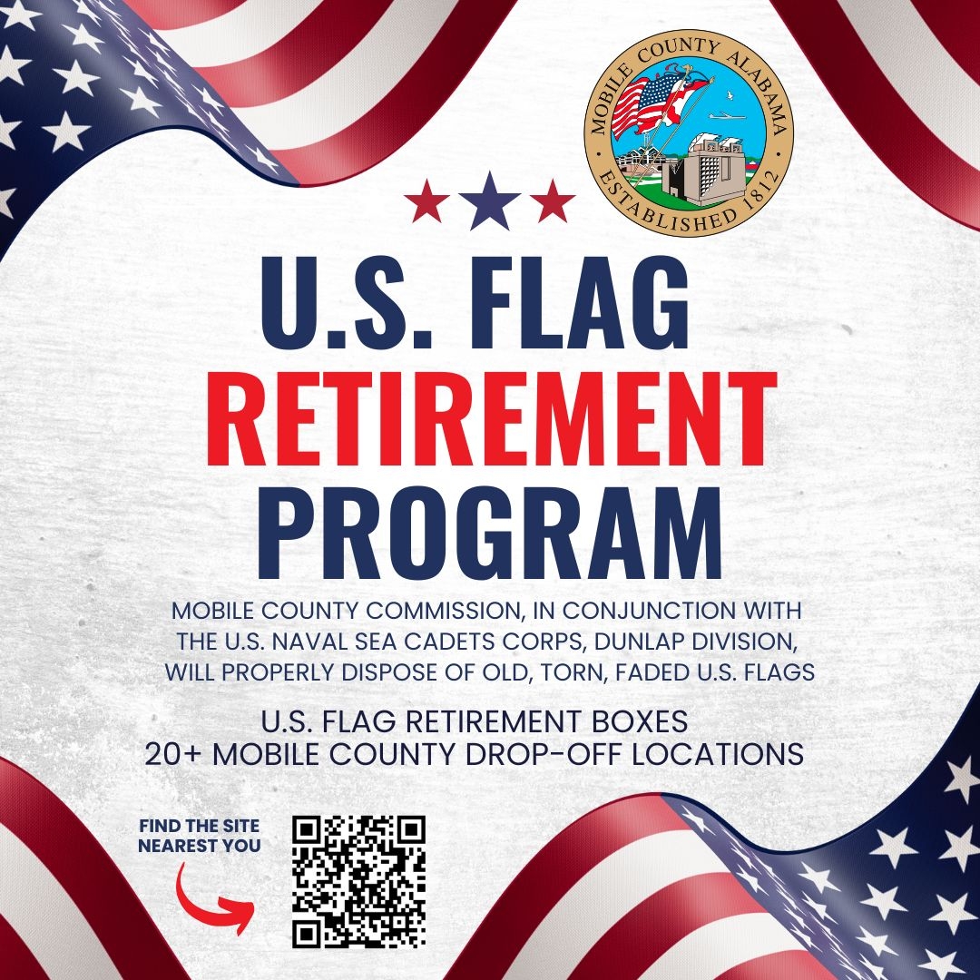 MOBILE COUNTY, Ala. – Mobile County residents may now bring old, worn, or damaged U.S. flags to several designated locations throughout the county for proper and respectful disposal. As a convenience to the public, the Mobile County Commission is expanding its flag disposal program to about 20 new locations throughout the county.