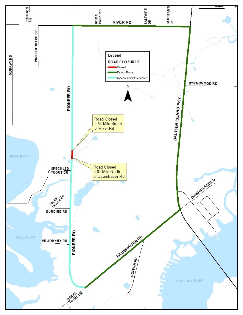 Pioneer Road in the Fowl River Community Closed to Through Traffic Beginning July 10